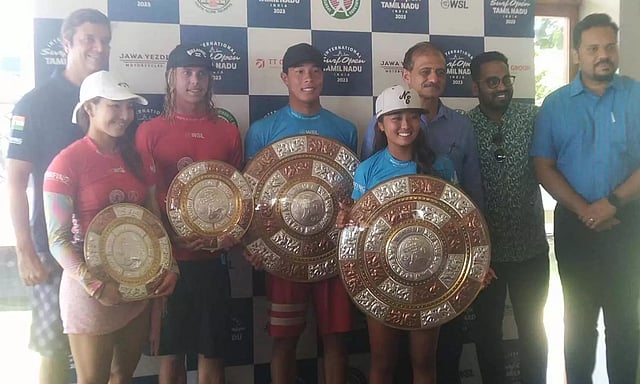 மாமல்லபுரத்தில் சர்வதேச அலைச்சறுக்கு போட்டி கடந்த 12-ந்தேதி தொடங்கியது.நேற்று அரையிறுதி மற்றும் இறுதி சுற்று போட்டியுடன் நிறைவடைந்தது. இதில் ஆண்கள் இறுதி போட்டியில் ஜப்பான் நாட்டை சேர்ந்த டென்ஷி இவாமி முதலிடம் பிடித்தார். சுவீடன் நாட்டை சேர்ந்த கியான் மார்ட்டின் 2-ம் இடத்தை பிடித்தார். பெண்கள் இறுதி போட்டியில் ஜப்பான் நாட்டை சேர்ந்த வீராங்கனைகள் சாரா வகிதா முதலிடமும், ஷினோ மட்சுடா 2-ம் இடமும் பிடித்து சாதனை படைத்தனர்.