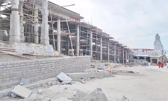 அதற்கு முன்பாக பல்வேறு கட்டங்களாக நடைபெற்று வந்த மெகா திட்ட வளாக பணிகள் வேகமாக நடைபெற்று வருகிறது. அதன்படி கோவில் முன்பு சண்முக விலாசத்தில் இருந்து ஏற்றம் காணும் இடங்களில் தரையில் கல் பதிக்கும் வேலை நடைபெற்று முடிவடையும் நிலையில் உள்ளது. அதே போல் கடற்கரையில் மேடு, பள்ளங்கள் அகற்றப்பட்டு சமப்படுத்தப்பட்டு வருகிறது.