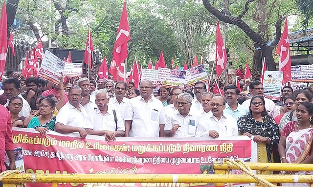 மத்திய அரசை கண்டித்து கோஷங்கள் எழுப்பினார்கள். இந்த போராட்டத்தால் நுங்கம்பாக்கம் சாஸ்திரி பவன் சாலையில் போக்குவரத்து பாதிப்பு ஏற்பட்டது. போராட்டத்தில் ஈடுபட்ட மாநில செயலாளர் கே.பாலகிருஷ்ணன் உள்பட 600 பேர் பங்கேற்றனர். இவர்களில் 100 பேர் பெண்கள் ஆவர்.