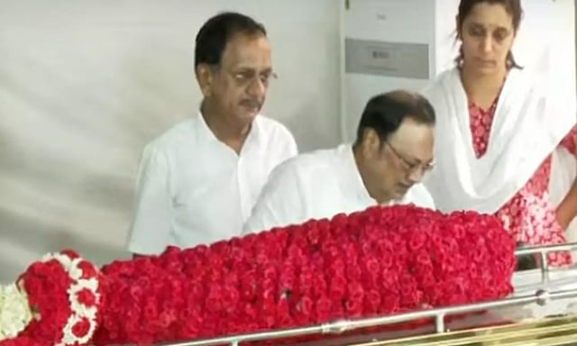 இந்நிலையில் கோபாலபுரம் இல்லத்தில் வைக்கப்பட்டுள்ள மூத்த சகோதரர் மு.க.முத்துவின் உடலுக்கு மு.க.அழகிரி மாலை அணிவித்து, கண்ணீர் மல்க அஞ்சலி செலுத்தினார்.