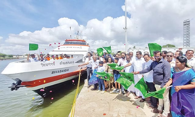 இந்த சிவகங்கை பயணிகள் கப்பலை புதுச்சேரி மந்திரி நமச்சிவாயம், நாகை மாவட்ட கலெக்டர் ஆகாஷ், செல்வராஜ் எம்.பி. ஆகியோர் கொடியசைத்து தொடங்கி வைத்தனர். அதனைத் தொடர்ந்து, 44 பயணிகளுடன் நாகை துறைமுகத்தில் இருந்து கப்பல் புறப்பட்டது.