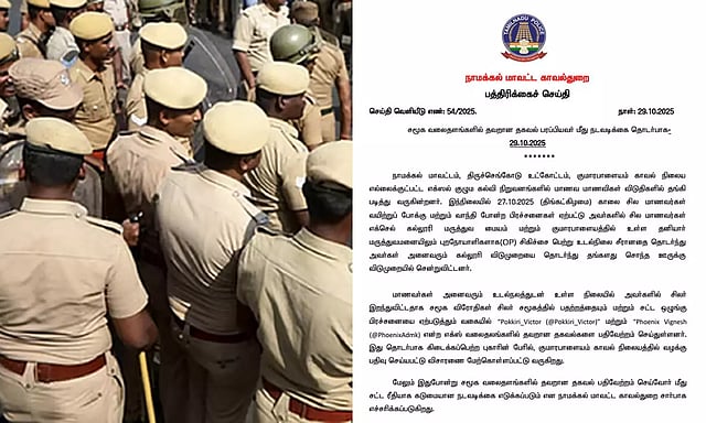 நாமக்கல் மாவட்ட காவல் துறை சார்பில் வெளியிடப்பட்டுள்ள செய்திக்குறிப்பில்,