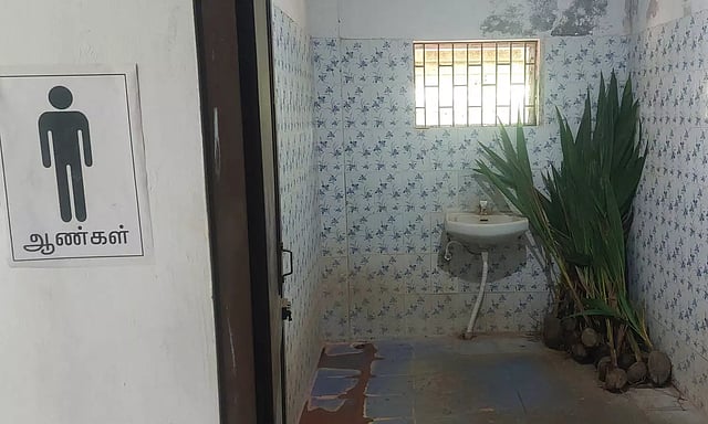 இந்த நிலையில் விவசாயிகளுக்கு வழங்கப்பட வேண்டிய தென்னை கன்றுகளை முறையாக பாதுகாக்காமல் வட்டார வளர்ச்சி அலுவலகத்தில் உள்ள ஆண்கள் கழிவறையில் வைத்து உள்ளனர்.