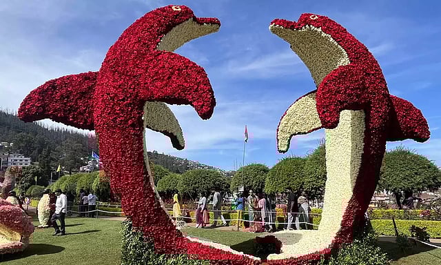 குறிப்பாக 20 ஆயிரம் பல வண்ண ரோஜா மலர்களை கொண்டு டால்பின்கள் அலங்காரம் வடிவமைக்கப்பட்டுள்ளது. மேலும் பல ஆயிரம் ஆயிரம் ரோஜா மலர்களை கொண்டு சிப்பி, நத்தை, மீன், பென்குயின் உள்பட பல்வேறு வடிவங்களும் உருவாக்கப்பட்டு சுற்றுலா பயணிகள் பார்வைக்கு வைக்கப்பட்டிருந்தது.