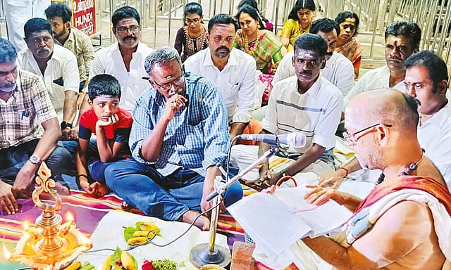 இந்த ஆண்டு சித்திரை 1-ந்தேதியில் இருந்து 2025-ம் ஆண்டு பங்குனி 31-ந்தேதி வரை நடைபெறும் முக்கிய நிகழ்வுகள் பஞ்சாங்கமாக வாசிக்கப்பட்டது. இந்த பஞ்சாங்கத்தை கோவிலின் உதயகுமார் குருக்கள் வாசித்தார்.