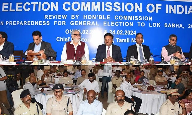 அந்த வகையில் தமிழ் நாட்டில் தேர்தல் பணிகளை ஆய்வு செய்யவும், அரசியல் கட்சிகளின் கருத்துக்களை கேட்டு அறியவும் இந்திய தலைமை தேர்தல் கமிஷனர் ராஜீவ்குமார் நேற்றிரவு விமானம் மூலம் சென்னை வந்தார். அவருடன் தேர்தல் கமிஷனர் அருண் கோயல், மூத்த துணை தேர்தல் கமிஷனர்கள் தர்மேந்திர சர்மா, நிதிஷ் வியாஸ், துணை தேர்தல் கமிஷனர்கள் அஜய் பாது, மனோஜ்குமார் சாகு, முதன்மை செயலாளர் மலேய்மாலிக் மற்றும் உயர் அதிகாரிகள் நாராயணன், அனுஜ் சந்தக் ஆகியோரும் சென்னை வந்தனர்.