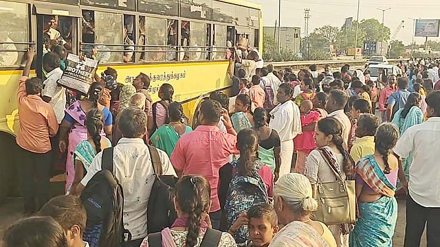 இதனால் ஆத்திரம் அடைந்த பயணிகள் ஏராளமானோர் பஸ்நிலையத்தில் இருந்த போக்குவரத்து அதிகாரிகாரிகளிடம் கடும் வாக்குவாதத்தில் ஈடுபட்டனர். மேலும் பஸ் நிலையத்தில் ஏராளமானோர் அமர்ந்து போராட்டம் செய்தனர். மேலும் ஏராளமான இளைஞர்கள், பெண்கள் த.வெ.க. என்று கூச்சலிட்டனர்.