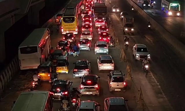சிங்கப்பெருமாள் கோவில் அருகே ஜிஎஸ்டி சாலையில் கடும் போக்குவரத்து நெரிசல் ஏற்பட்டுள்ளது.