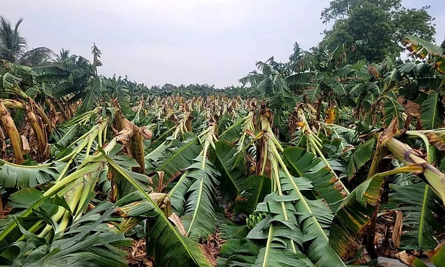 அறுவடைக்கு சில நாட்களே இருந்த நிலையில் 10 ஆயிரத்துக்கும் மேற்பட்ட வாழை மரங்கள் முறிந்து சேதம் அடைந்துள்ளதால் அப்பகுதி விவசாயிகள் கவலை அடைந்துள்ளனர். அதே போல் பனஹள்ளியில் இருந்து பையணாபுரம் செல்லும் சாலையில் உள்ள புளியமரம் முறிந்து விழுந்ததால் போக்குவரத்து பாதிக்கப்பட்டது. இதனால் வாகன ஓட்டிகள் கடும் அவதிபட்டனர்.