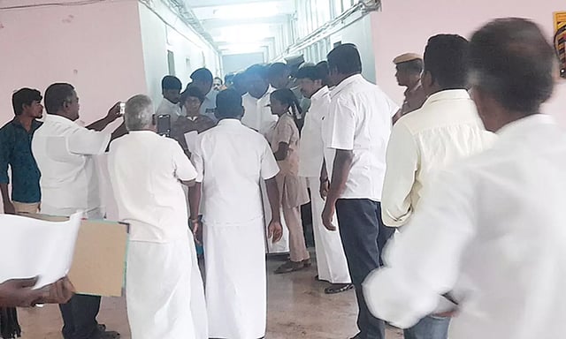 இதில் பங்கேற்பதற்காக இன்று காலை போக்குவரத்துறை அமைச்சர் எஸ்.எஸ்.சிவசங்கர் கலெக்டர் அலுவலகத்திற்கு வந்தார். அவருடன் பெரம்பலூர் தொகுதி எம்.எல்.ஏ. பிரபாகரனும் உடனிருந்தார். இவர்கள் இருவரும் மேல் தளத்திற்கு செல்வதற்காக அங்கு இருந்த லிப்டில் ஏறி சென்றனர்.