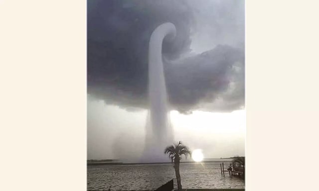 அப்போது, திடீரென மேகங்கள் வானில் இருந்து தாழ்வாக கடல் அருகே இறங்கியது. சற்று நேரத்தில் கடல்நீர் சுழல் போல் மேலெழுந்து மேகங்களுக்குள் இழுக்கப்பட்டது. இந்த வினோத காட்சியை மீனவர்கள் கண்டு ஆச்சரியம் அடைந்தனர்.