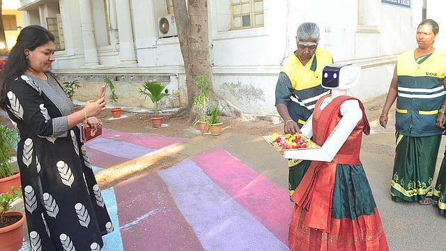இந்த வாக்குச்சாவடி மையத்தில் வாக்களிக்க வந்த வாக்காளர்களை வரவேற்கும் விதமாக ரோபோ வைக்கப்பட்டிருந்தது. அந்த ரோபோ வாக்குச்சாவடி மையத்திற்கு வந்த வாக்காளர்களுக்கு சாக்லெட் கொடுத்து வரவேற்றது. அதன்பின்னர் பொதுமக்கள் தங்கள் வாக்கினை பதிவு செய்து சென்றனர்.