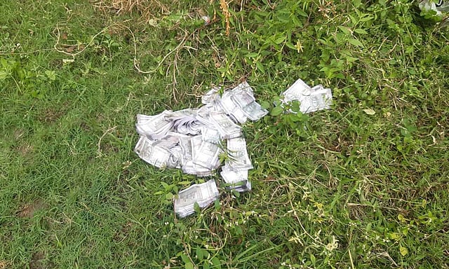 காற்றில் பறந்த ரூபாய் நோட்டுகளை பொதுமக்கள் சிலர் எடுத்து சென்றனர். அவர்கள் இந்த ரூபாய் நோட்டுகளை பயன்படுத்தக்கூடாது என போலீசார் எச்சரிக்கை விடுத்துள்ளனர்.