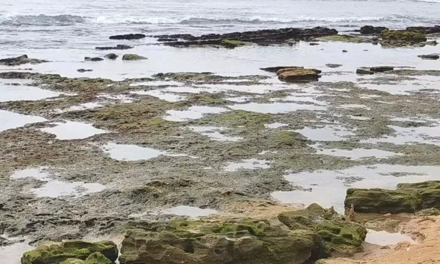 இந்த நிலையில் இன்று கோவில் கடலானது சுமார் 100 அடி உள்வாங்கி காணப்பட்டது. இதனால் பச்சை நிற பாசி படிந்த பாறைகள் வெளியே தெரிந்தது. கோவிலுக்கு வந்த பக்தர்கள் பாறையில் மீது ஏறி நின்று செல்பி எடுத்து மகிழ்ந்தனர்.