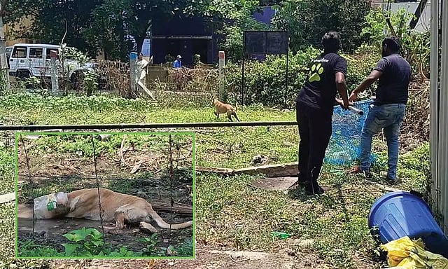நாயின் தலையில் மாட்டிய பிளாஸ்டிக் டப்பாவை அகற்ற உதவிய தன்னார்வ குழுவினருக்கு அப்பகுதி மக்கள் நன்றி தெரிவித்தனர்.