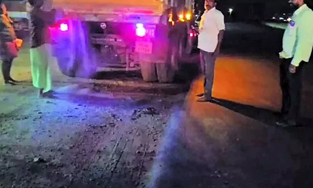 இந்நிலையில் நேற்று இரவில் ஆலங்குளம் அருகே உள்ள தனியார் கல்குவாரியில் இருந்து கேரளாவிற்கு எம்.சான்ட் ஏற்றி சென்ற லாரியின் தொட்டியில் இருந்த துவாரம் வழியாக எம். சாண்ட் மணல் சாலையில் கொட்டி கொண்டே சென்றதால் அதன் பின்னால் சென்ற வாகன ஓட்டிகளின் கண்களை எம்.சாண்ட் மண் பதம் பார்த்தது. உடனடியாக சில சமூக ஆர்வலர்கள் அந்த கனரக லாரியை பாவூர்சத்திரம் அடுத்து உள்ள கல்லூரணி விலக்கு அருகே வைத்து சிறை பிடித்தனர். மேலும் இது குறித்து பாவூர்சத்திரம் போலீசாருக்கும் தகவல் அளித்தனர்.