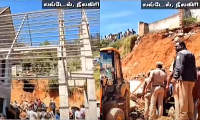நீலகிரி மாவட்டம் உதகை அருகே லவ்டேல் பகுதியில் கட்டுமான பணி நடைபெற்று வந்தது. கட்டுமான பணியின்போது திடீரென மண் சரிந்து விழுந்தது. இந்த விபத்தில் பணியில் ஈடுபட்டிருந்த தொழிலாளிகள் சிக்கிக்கொண்டனர்.