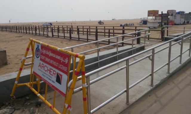 சென்னை மெரினா கடற்கரை மணல் பரப்பில் மாற்றுத்திறனாளிகள், முதியோர்கள் கடல் அழகை ரசிக்கும் வகையில் மரக்கட்டையால் சிறப்பு நடைபாதை வசதி சென்னை மாநகராட்சி சார்பில் அமைக்கப்பட்டு உள்ளது.