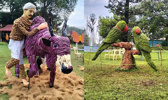 இந்த கண்காட்சியில் தமிழ் கலாசாரத்தை பறை சாற்றும் வகையில் ஜல்லிக்கட்டு காளை, தமிழரின் வீரத்தை பறைசாற்றும் வகையில் சிலம்பாட்டம் வடிவமைப்பு, மரகதபுறா, மிளகாய், கேரட் உள்ளிட்ட காய்கறிகளை கொண்டு பச்சைக்கிளி, வண்ணத்துப்பூச்சி உள்ளிட்ட உருவங்கள் வடிவமைக்கப்பட்டு பார்வைக்கு வைக்கப்பட்டு இருந்தன.