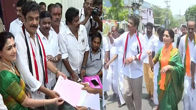 அ.தி.மு.க.- பா.ஜ.க. கூட்டணியில் ஏ.சி. சண்முகத்தின் புதிய நீதிக் கட்சிக்கு 2 தொகுதிகள் ஒதுக்கப்பட்டன. இதில் மதுரை மத்திய தொகுதி வேட்பாளராக இயக்குநர் சுந்தர். சி அறிவிக்கப்பட்டார். அவர் இன்று வேட்பு மனு தாக்கல் செய்தார். வேட்பு மனு தாக்கலின்போது சுந்தர். சியின் மனைவி குஷ்புவும் உடன் இருந்தார்.