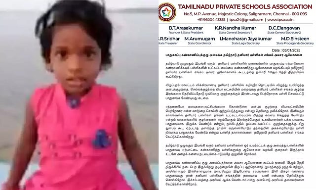 விழுப்புரம் மாவட்டம் விக்கிரவாண்டி தனியார் பள்ளியில் கழிவுநீர் தொட்டியில் விழுந்து உயிரிழந்த அன்புக்குழந்தை, செல்லக்குழந்தை லியா லட்சுமியின் மறைவுக்கு தனியார் பள்ளிகள் சங்கம் ஆழ்ந்த இரங்கலை தெரிவிப்பதோடு ஒவ்வொரு குழந்தைக்கும் இரண்டாவது பெற்றோராக பள்ளி செயல்பட்டு பாதுகாக்க வேண்டியது கடமை.