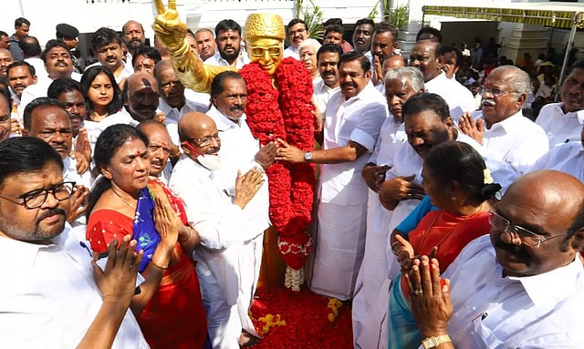 ராயப்பேட்டையில் உள்ள அ.தி.மு.க. தலைமை கழகத்தில் அக்கட்சியின் இடைக்கால பொதுச்செயலாளர் எடப்பாடி பழனிசாமி எம்.ஜி.ஆர். சிலைக்கு மாலை அணிவித்து மலர் தூவி மரியாதை செலுத்தினார். பின்னர் கட்சி நிர்வாகிகள், தொண்டர்களுக்கு இனிப்புகளையும் வழங்கினார்.