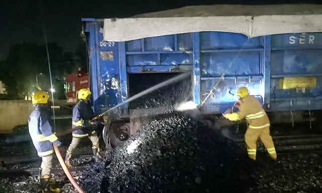 நிலக்கரி இருந்த பெட்டியின் அடிப்பகுதியில் தீ எரிவது தெரியவந்தது. அந்தப் பெட்டியை தனியாக துண்டித்தனர்.