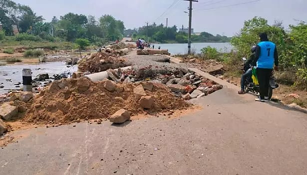 கடந்த 2021-ம் ஆண்டு டிசம்பர் மாதம் சேதமடைந்த தரைப்பாலத்தை நெடுஞ்சாலைத் துறையினர் 4.5 லட்சம் ரூபாய் மதிப்பில் தற்காலிகமாக சீரமைத்தனர்.