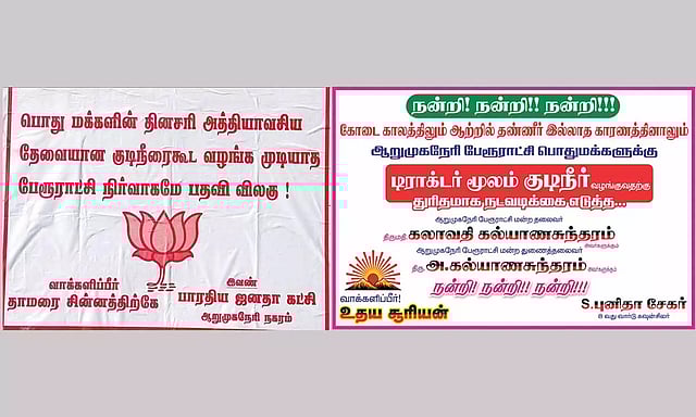 இந்தநிலையில் தான் இந்த பிரச்சினையை ஆறுமுகநேரி நகர பாரதிய ஜனதா கட்சியினர் கையில் எடுத்தனர். அவர்கள் குடிநீர் வழங்காத பேரூராட்சி நிர்வாகத்தை ராஜினாமா செய்ய வலியுறுத்தி போஸ்டர்களை ஒட்டினர். இதனால் பரபரப்பு ஏற்பட்டது. மேலும் குடிநீர் தட்டுப்பாடு குறித்து ஏன் முன்பே அறிவிக்கவில்லை என்றும் பிரசாரம் செய்து வந்தனர்.