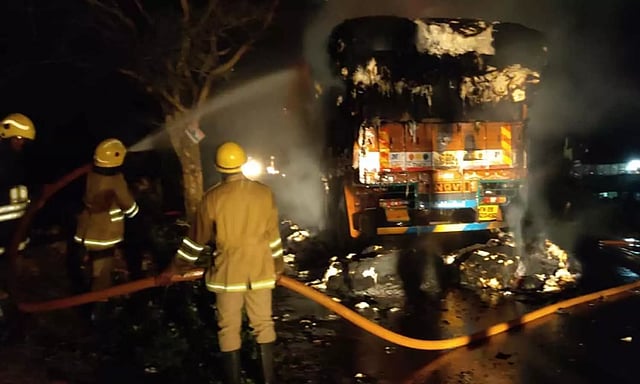 இந்த தீ விபத்தில் லாரியில் இருந்த ரூ.30 லட்சம் மதிப்புள்ள பஞ்சு எரிந்து சேதமானது. இந்த தீ விபத்துக்கான காரணம் குறித்து விசாரித்தபோது லாரியில் ஏற்பட்ட மின்கசிவு காரணமாக தீ விபத்து ஏற்பட்டிருப்பது தெரிய வந்தது.