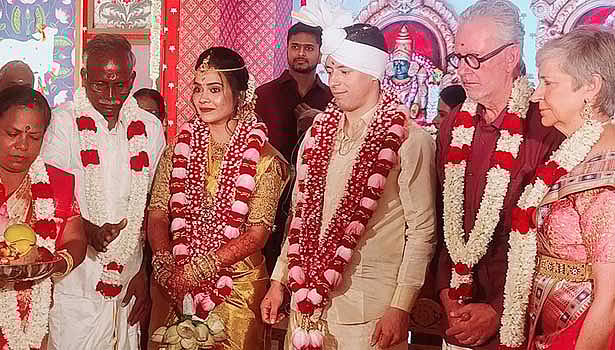 இதை தொடர்ந்து பிரான்ஸ் நாட்டில் இருந்து மணமகனின் உறவினர்கள் ஒரு வாரத்திற்கு முன்பே தமிழகத்திற்கு வந்தனர். வாழப்பாடியில் தமிழர் பாரம்பரிய முறைப்படி நடைபெற்ற பெண் அழைப்பு நிகழ்ச்சிகளில் பங்கேற்றனர். சேலம் 5 ரோடு பகுதியிலுள்ள திருமண மண்டபத்தில் இன்று திருமணம் நடைபெற்றது.
