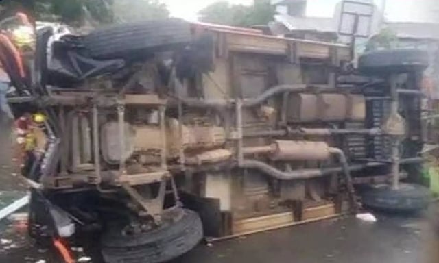 கரூர் மாவட்டம் வேலாயுதம்பாளையம் அருகே சேலம் பைபாஸ் சாலையில் கர்நாடக மாநிலத்தில் இருந்து சபரிமலைக்கு வந்து கொண்டிருந்த ஜீப் சாலையோரம் நிறுத்தி வைக்கப்பட்டிருந்த முட்டை வாகனத்தில் மோதி கவிழ்ந்து விபத்துக்குள்ளானது.