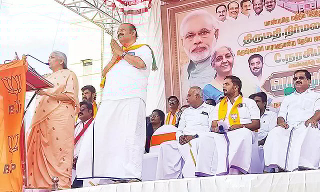 கிருஷ்ணகிரி பாராளுமன்ற தொகுதி தேசிய ஜனநாயக கூட்டணி சார்பில் பா.ஜ.க. வேட்பாளர் நரசிம்மன் போட்டியிடுகிறார். அவரை ஆதரித்து பொதுக் கூட்டத்தில் பேசுவதற்காக இன்று மத்திய நிதி மந்திரி நிர்மலா சீதாராமன் கிருஷ்ணகிரி மாவட்டம் ஓசூருக்கு வருகை தந்தார்.