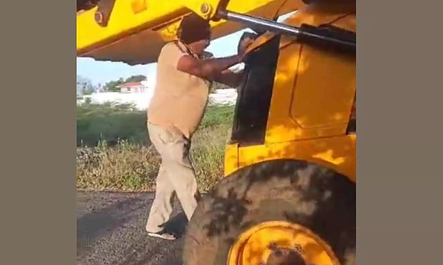 இதையடுத்து அங்கு சென்ற கதிரவன் தனது பொக்லைன் எந்திரத்தின் ஓட்டுனர் வசந்திடம், எதிரே நின்று கொண்டிருந்த செல்வகுமார் மீது ஏற்றும் படி கூறியதாக தெரிகிறது. வசந்த் மறுத்ததால் அவரை இறக்கி விட்ட கதிரவன் பொக்லைன் எந்திரத்தை இயக்கிய படி செல்வகுமார் மீது மோதினார்.பலமாக மோதியதில் செல்வகுமார் எந்திரத்திற்குள் சிக்கிக்கொண்டார். அவரது அலறல் சத்தம் கேட்டு அருகில் இருந்தவர்கள் அங்கு திரண்டுவரவே, கதிரவன், வசந்த் அங்கிருந்து தப்பி சென்று விட்டனர்.