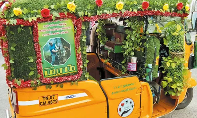 சென்னை அரசினர் விடுதி அருகே வலம் வந்த அவரது ஆட்டோவை பார்க்கும்போது வித்தியாசமாக இருந்தது. பச்சை பசேல் என்று நடமாடும் நந்தவனம் போன்று இருந்த அந்த ஆட்டோவை பலரும் ஆச்சரியத்துடன் பார்த்தனர்.