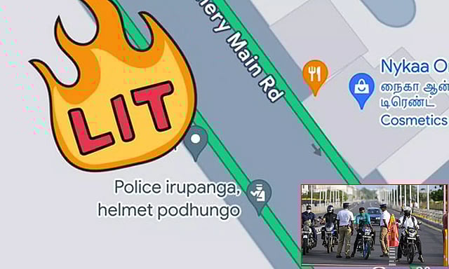 இப்படிப்பட்டவர்களுக்கு உதவும் வகையில் பயனர் ஒருவர் கூகுள் மேப் செயலியில் வேளச்சேரியை ஒட்டிய பகுதி ஒன்றில் 'போலீஸ் இருப்பாங்க ஹெல்மெட் போடுங்க' என்று குறிப்பிட்டுள்ளார். மேலும், இதனை சமூக வலைதளங்களிலும் பதிவிட்டார். இது தொடர்பான பதிவு வைரல் ஆனது.