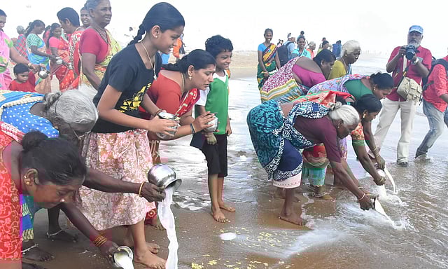 இதனால் கடலோர பகுதிகள் இன்று கண்ணீர் கடலாக காட்சி அளித்தது. உதிரி பூக்களை வாங்கி வந்து பலர் கடலில் தூவி மரியாதை செலுத்தினார்கள். மெரினா பட்டினப்பாக்கம் கடற்கரை பகுதியில் ஊர்வலமாக சென்று மக்கள் அஞ்சலி செலுத்தினார்கள்.