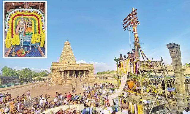 இத்தகைய பல்வேறு சிறப்புகள் வாய்ந்த பெரிய கோவிலில் ஆண்டுதோறும் சித்திரை மாதத்தில் சித்திரை திருவிழா 18 நாட்கள் நடைபெறும். அதன்படி இந்த ஆண்டு சித்திரை திருவிழாவுக்கான பந்தக்கால் முகூர்த்தம் கடந்த பிப்ரவரி மாதம் 8-ந் தேதி நடைபெற்றது.
