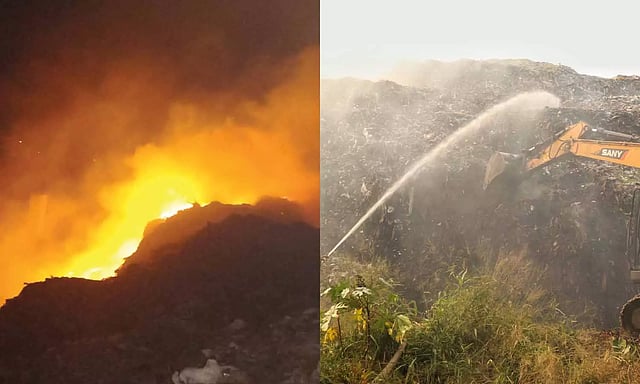 அந்த பகுதி வழியாக வாகனங்கள் வர முடியாத நிலை ஏற்பட்டது. எதிரே வரும் வாகனங்கள் தெரியாத அளவிற்கு இருந்ததால் பொதுமக்கள் மிகவும் சிரமத்திற்கு ஆளானார்கள். இந்நிலையில் தக்கலையில் இருந்தும் தீயணைப்பு வாகனம் வரவழைக்கப்பட்டது. தீயணைப்பு வீரர்கள் தீயை அணைக்க தற்பொழுது போராடி வருகிறார்கள். ஜே..சி.பி. எந்திரம் மூலமாக குப்பைகள் கிளறப்பட்டு தீயை அணைக்கும் பணி நடைபெற்று வருகிறது.