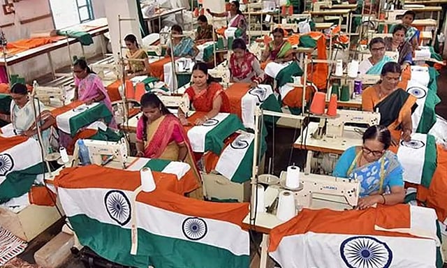 இதையொட்டி நாட்டின், பல்வேறு பகுதிகளிலும் தேசியக் கொடி தயாரிக்கும் பணி மும்முரமாக நடைபெற்று வருகிறது. அதன்படி, கோவை டவுன்ஹாலில் தேசியக் கொடி தயாரிக்கும் பணிகள் தொடங்கப்பட்டுள்ளன.