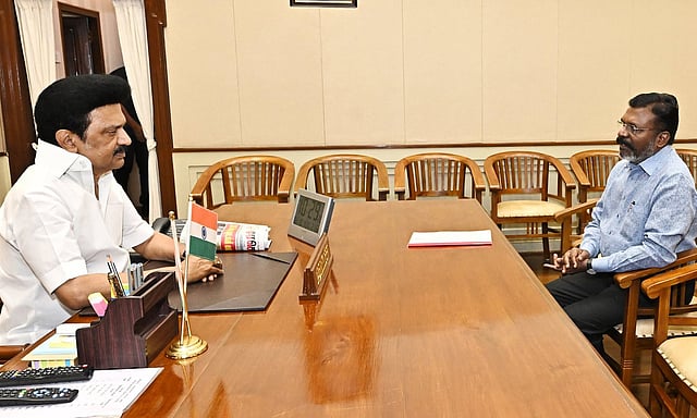 அப்போது, முதலமைச்சர் மு.க.ஸ்டாலினை சந்தித்த விசிக தலைவர் திருமாவளவன், "பட்டியல் சமூகத்தினரை வணிகர்களாக வளர்த்தெடுக்கும் வகையில் வணிக வளாகங்களை அமைத்துத் தர வேண்டும்" என்று கோரிக்கை விடுத்துள்ளதாக தெரிவித்தார்.