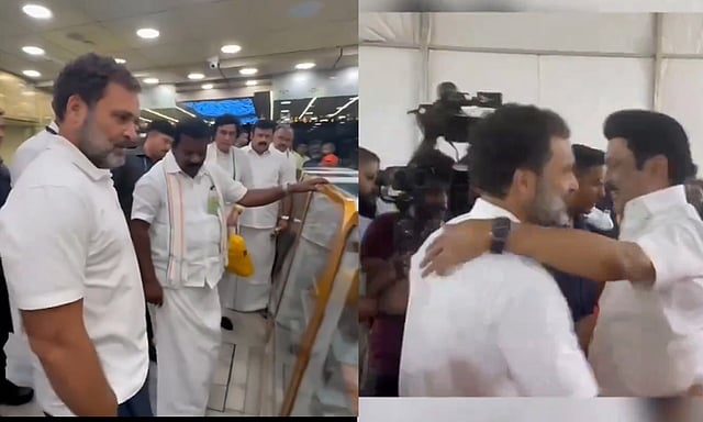 பிறகு, பொதுக்கூட்டத்தில் முதலமைச்சர் மு.க.ஸ்டாலினை சந்தித்த ராகுல் காந்தி, தான் வாங்கிய இனிப்பை வழங்கி அன்பை வெளிப்படுத்தினார். இந்த வீடியோ இணையத்தில் வைரல் ஆனது.