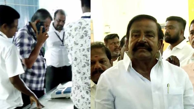 பின்னர் இயந்திரம் சரி செய்யப்பட்ட பின் அமைச்சர் கே.என். நேரு தனது வாக்கை பதிவு செய்தார்.