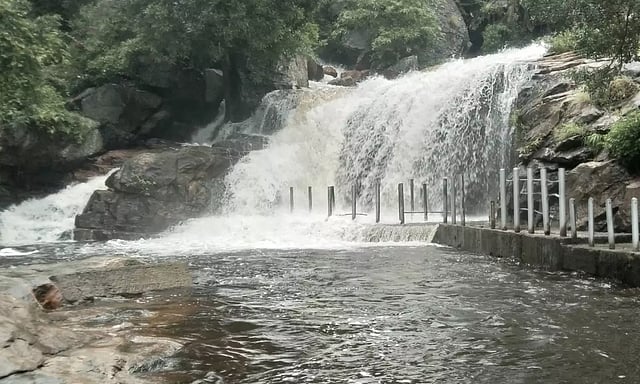 இதனால் இன்று காலை அருவியில் குளிக்க சுற்றுலா பயணிகளுக்கு தடை விதிக்கப்பட்டது. இதன் காரணமாக அங்கு வந்த சுற்றுலா பயணிகள் ஏமாற்றத்துடன் திரும்பி சென்றனர். அமணலிங்கேஸ்வரர் கோவிலில் தரிசனம் செய்து விட்டு சென்றனர். அருவியின் நீர் வரத்தை கோவில் நிர்வாகிகள் மற்றும் வனத்துறையினர் தொடர்ந்து கண்காணித்து வருகின்றனர்.