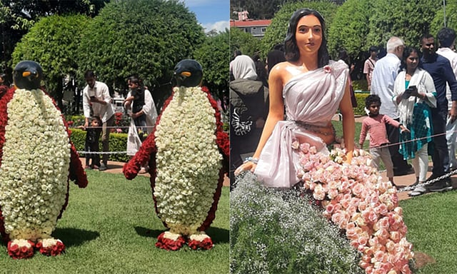 இதுதவிர வெளி மாவட்டங்களைச் சேர்ந்த தோட்டக்கலைத்துறையினர் 10-க்கும் மேற்பட்ட குடில்களில் பல வகையான மலர் அலங்காரங்களை செய்து வைத்துள்ளனர். மேலும் 40 வகையான 4 ஆயிரம் ரோஜா செடிகளில் பலவண்ண மலர்கள் பூத்துக்குலுங்குகின்றன.
