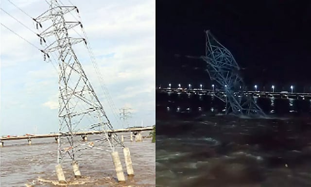 இந்நிலையில் நேற்று இரவு ஆற்றுப்பகுதியில் உள்ள மின் கோபுரத்தின் அடிப்பகுதி முழுவதுமாக அரித்து செல்லப்பட்டதால் உயர் மின்னழுத்த கம்பிகள் செல்லும் ராட்சத கோபுரம் சாய்ந்து ஆற்றில் விழுந்தது.
