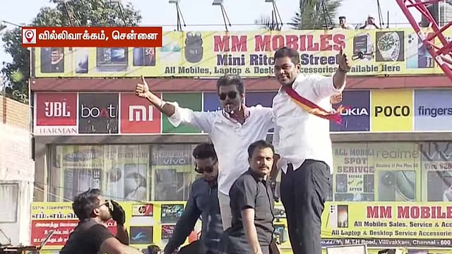 பிரசார வாகனத்தின் மேல் ஏறி நின்று, விஜய் மக்களை நோக்கி கையசைத்தவாறு சென்றார். விஜயின் பிரசாரத்தால் பாடி, அண்ணாநகர் போக்குவரத்தால் ஸ்தம்பித்தது.