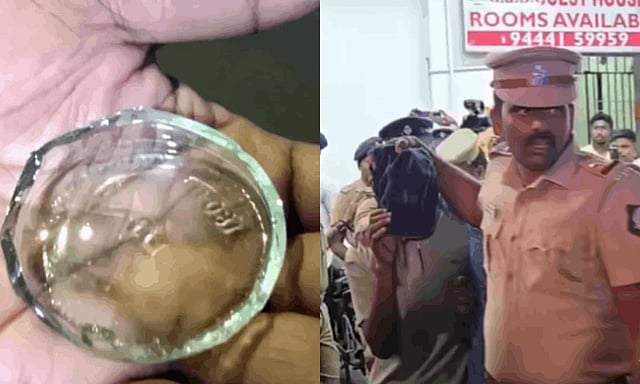 இதனிடையே மதுபாட்டில் வீசப்பட்ட சம்பவம் குறித்து காவல் துறையினர் விசாரணை நடத்தி தங்கும் விடுதியில் இருந்த இரண்டு பேரை கைது செய்துள்ளனர். அவர்களிடம் மேற்கொள்ளப்பட்ட விசாரணையில் அயவனாவரத்தில் த.வெ.க. பொதுக்கூட்டம் நடைபெற்ற இடத்திற்கு அருகில் உள்ள குடியிருப்பில் மதுபோதையில் இருந்த இருவர் சண்டையிட்டு கொண்டனர். அப்போது அவர்களுக்குள் மாறி மாறி மாதுபாட்டில் வீசிகொண்ட போது தவறுதலாக பொதுக்கூட்டத்தில் மதுபாட்டில் விழுந்தது.