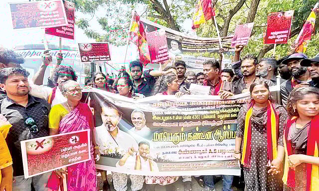 இதையடுத்து போராட்டத்தில் ஈடுபட்ட த.வெ.க.வினரை போலீசார் தடுத்து நிறுத்தினர். அப்போது இருதரப்பினருக்கும் இடையே தள்ளுமுள்ளு ஏற்பட்டது.