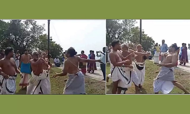 வடகலை,தென்கலை பிரிவினரிடைய பிரபந்தம் பாடுவது தொடர்பான வழக்கு ஏற்கனவே கோர்ட்டில் வழக்கு நிலுவையில் உள்ளது. கோவிலில் பிரபந்தம் பாடுவது தொடர்பாகவும் இருதரப்பினருக்கும் இடையே தொடர்ந்து மோதல் ஏற்பட்டு வந்த நிலையில் தற்போது மீண்டும் அவர்களுக்குள் கைகலப்பு ஏற்பட்ட சம்பவம் காஞ்சிபுரம் பகுதியில் பரபரப்பை ஏற்படுத்தி உள்ளது. வடகலை, தென்கலை பிரிவினர் ஒருவரை ஒருவர் தாக்கிக்கொள்ளும் வீடியோ காட்சிகள் தற்பொழுது சமூக வலைதளங்களில் வைரலாக பரவி வருகிறது.